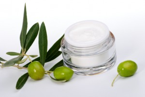 Face cream and olive twig
