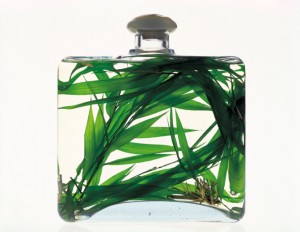 Bottle containing grass and liquid