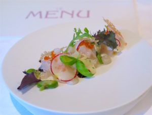 Raw marinated bass with artichoke salad crisp olives and meadow herbs at Restaurant Bareiss ©MRNY