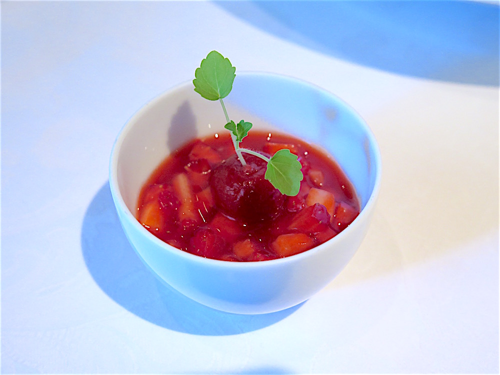 Green tea lychee granité with strawberries at Restaurant Bareiss ©MRNY