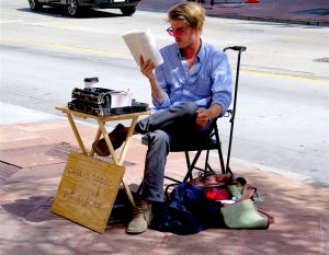 Poet outside Tattered Cover Book Store (photo by ©MRNY)