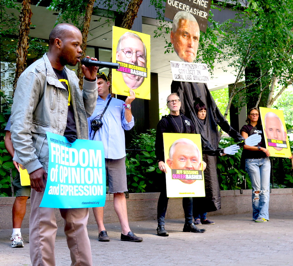 Mpagi Kirumira from Uganda denounces the anti-LGBTQ policies of his homeland (photo by ©MRNY)