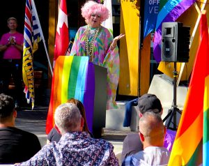 Conni Smudge, diva extraordinaire, dedicates the rainbow crosswalk in Whistler (photo by ©MRNY)