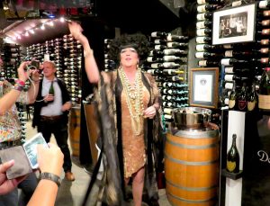 Conni Smudge sabers the Champagne at the Bearfoot Bistro (photo by ©MRNY)