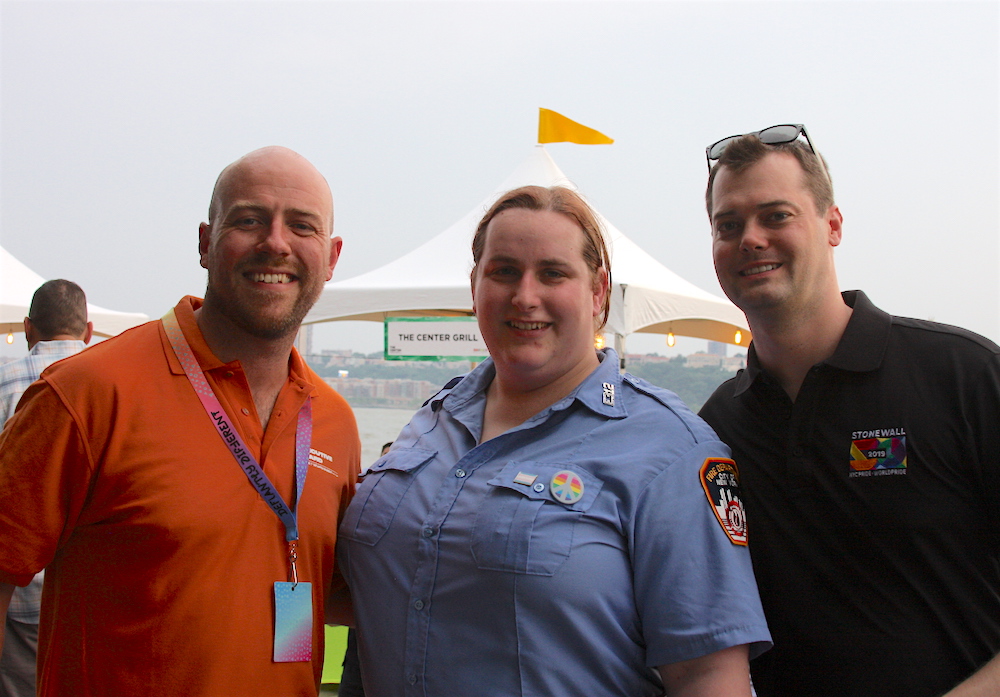 NYC Pride’s Chris Frederick with Brooke Guinan, New York City’s first openly transgender firefighter, and NYC Pride’s David Studinski (photo by ©MRNY)
