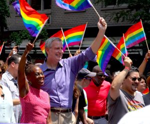 NYC Mayor Bill de Blasio and wife Chirlane McCray at NYC Pride March 2018 (photo by ©MRNY)