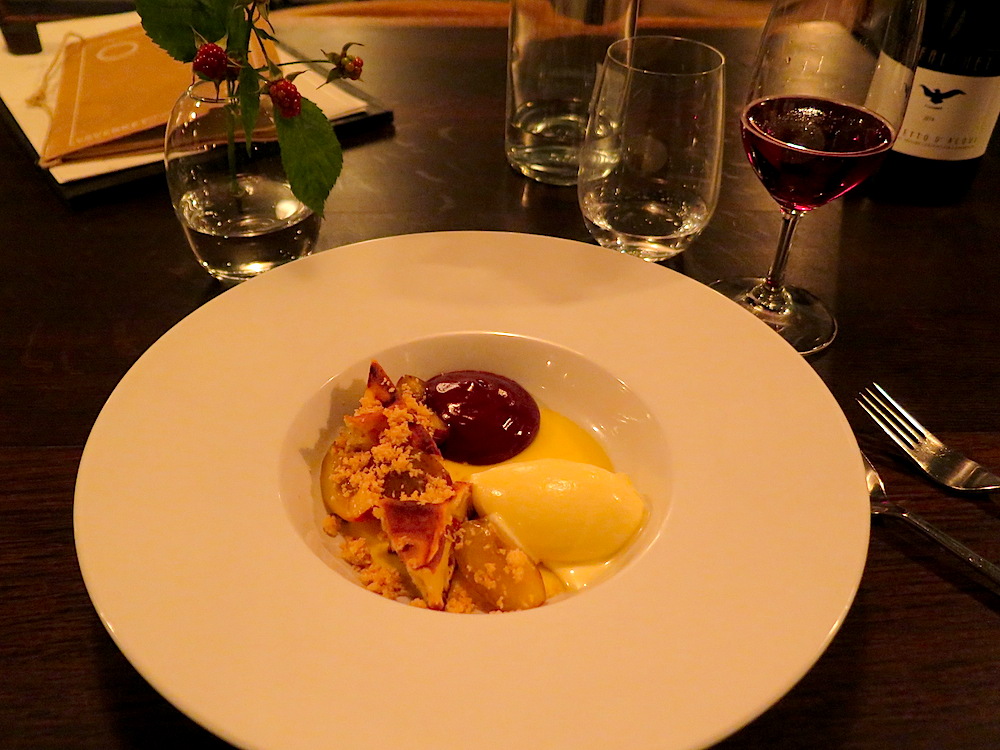 Juniper custard, plums, waffles, and chocolate at Lysverket ©MRNY