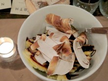 A blackened scallop accompanied green tea noodles served with Swedish kelp. Sashimi halibut with pickled onion was drizzled with browned yuzu butter and streaked with a glistening golden trail of bleak roe. A dessert of cloudberries accompanied by a cream cheese mousse and almonds was evocative of ambrosia.